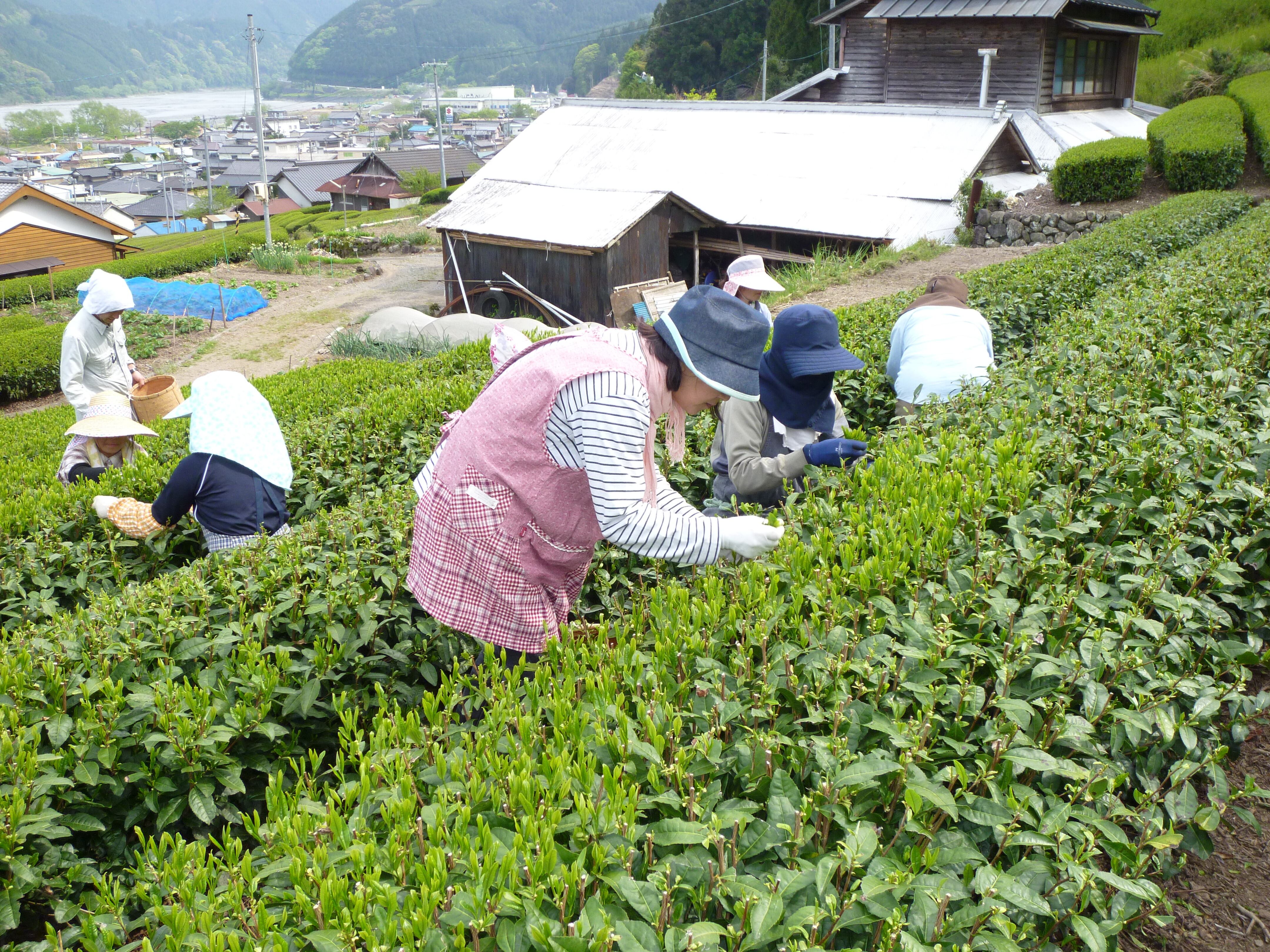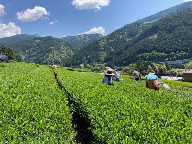ベテランのお茶摘みさん達に、早朝より一葉ずつ丁寧に摘み取ってもらい、夕方から夜中にかけて製茶します。